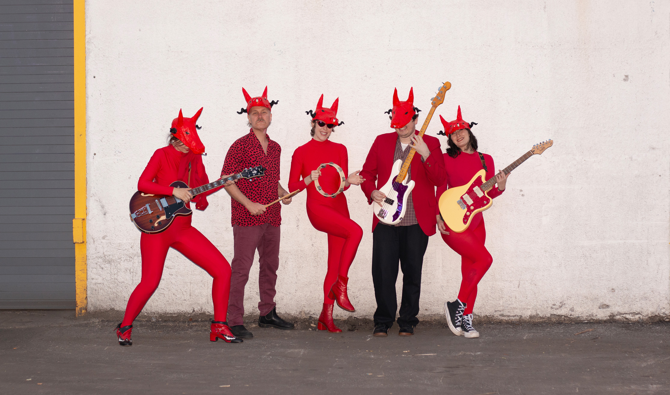 The Satan Mares are: Ira on vocal and rhythm guitar, Kim on bass and vocal, Frankie on drums, Zina on lead guitar and keys, and Davey on sitar and flute.